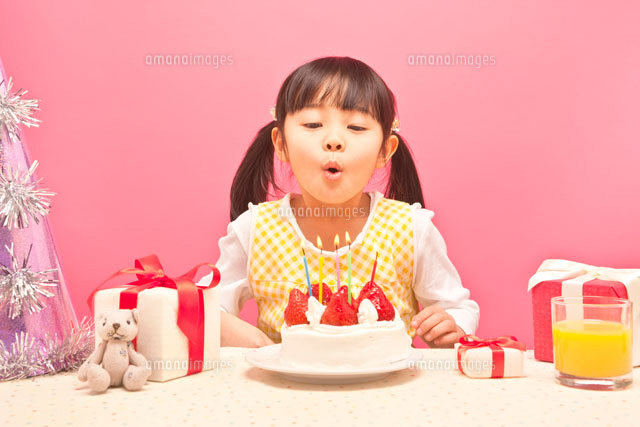 バースデイケーキのろうそくを吹き消す女の子 の写真素材 イラスト素材 アマナイメージズ